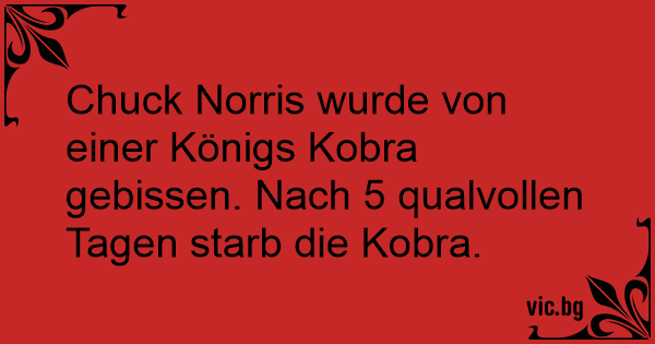 Chuck Norris wurde von einer Königs Kobra gebissen. Nach 5 qualvollen Tagen starb die Kobra.