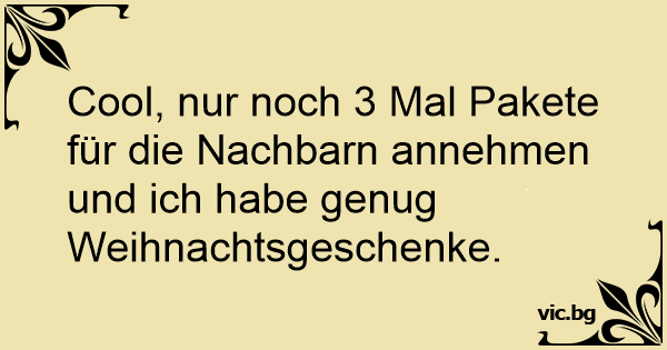 Cool, nur noch 3 Mal Pakete für die Nachbarn annehmen und ich habe genug Weihnachtsgeschenke.