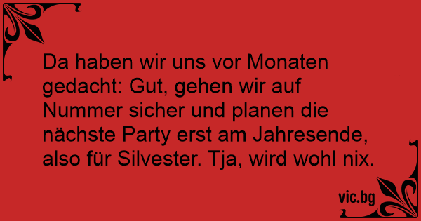 Da haben wir uns vor Monaten gedacht: Gut, gehen wir auf Nummer sicher und planen die nächste Party erst am Jahresende, also für Silvester. Tja, wird wohl nix.