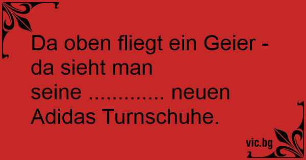 Da oben fliegt ein Geier - da sieht man seine ............. neuen Adidas Turnschuhe.