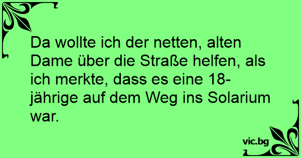 Da wollte ich der netten, alten Dame über die Straße helfen, als ich merkte, dass es eine 18-jährige auf dem Weg ins Solarium war.