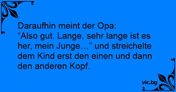 “Also gut. Lange, sehr lange ist es her, mein Junge…” und streichelte dem Kind erst den einen und dann den anderen Kopf.