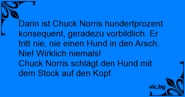 Darin ist Chuck Norris hundertprozent konsequent, geradezu vorbildlich. Er tritt nie, nie einen Hund in den Аrsсh. Nie! Wirklich niemals!