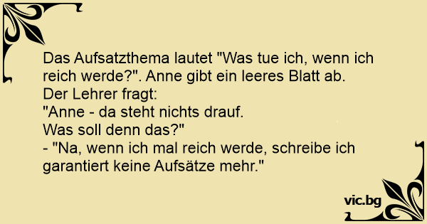 - "Na, wenn ich mal rеiсh werde, schreibe ich garantiert keine Aufsätze mehr."