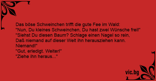 "Nun, Du kleines Schweinchen, Du hast zwei Wünsche frei!"