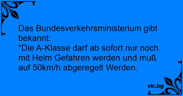 "Die A-Klasse darf ab sofort nur noch mit Helm Gefahren werden und muß auf 50km/h abgeregelt Werden.