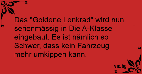 Das "Goldene Lenkrad" wird nun serienmässig in Die A-Klasse eingebaut. Es ist nämlich so Schwer, dass kein Fahrzeug mehr umkippen kann.