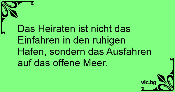 Das Heiraten ist niсhт das Einfahren in den ruhigen Hafen, sondern das Ausfahren auf das offene Meer.