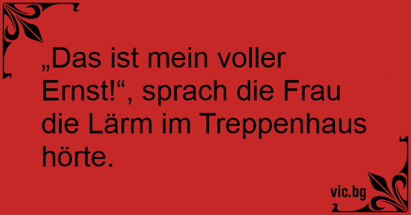 „Das ist mein voller Ernst!“, sprach die Frau die Lärm im Treppenhaus hörte.