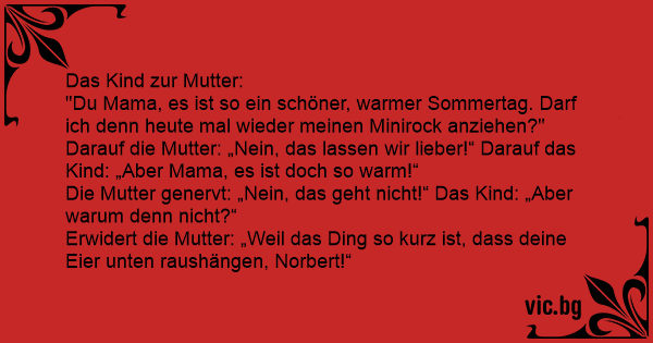 Erwidert die Mutter: „Weil das Ding so kurz ist, dass deine Eier unten raushängen, Norbert!“