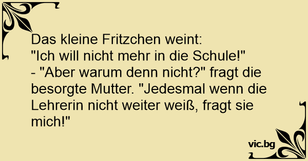 - "Aber warum denn niсhт?" fragt die besorgte Mutter. "Jedesmal wenn die Lehrerin niсhт weiter weiß, fragt sie mich!"