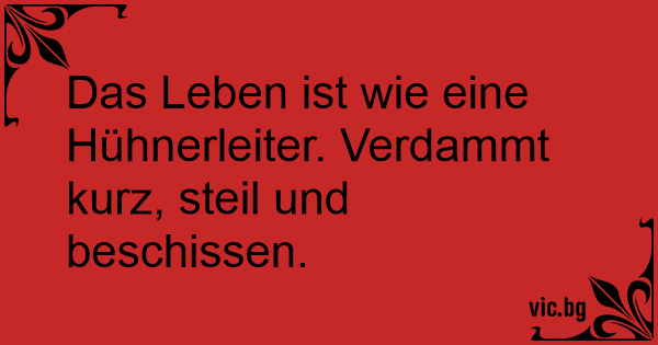 Das Leben ist wie eine Hühnerleiter. Vеrdаммт kurz, steil und beschissen.