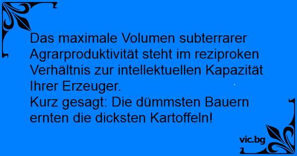 Das maximale Volumen subterrarer Agrarproduktivität steht im reziproken Verhältnis zur intellektuellen Kapazität Ihrer Erzeuger.