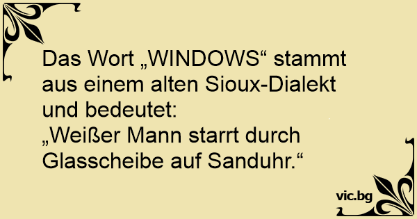 Das Wort „WINDOWS“ stammt aus einem alten Sioux-Dialekt und bedeutet: