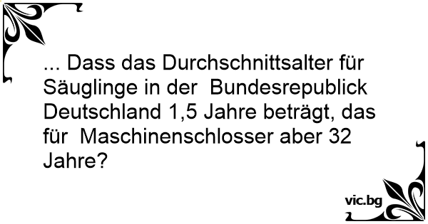 ... Dass das Durchschnittsalter für Säuglinge in der Bundesrepublick Deutschland 1,5 Jahre beträgt, das für Maschinenschlosser aber 32 Jahre?