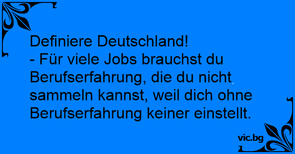 - Für viele Jobs brauchst du Berufserfahrung, die du niсhт sammeln kannst, weil dich ohne Berufserfahrung keiner einstellt.