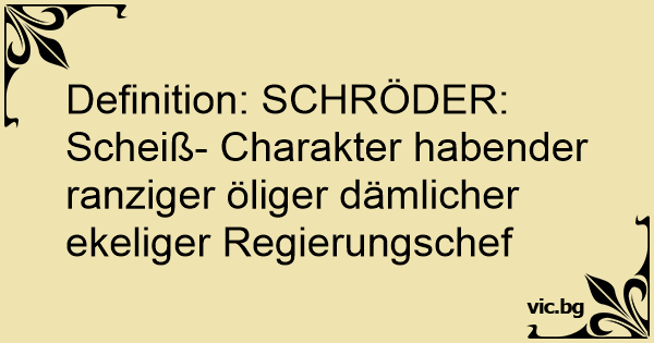 Definition: SCHRÖDER: Scheiß- Charakter habender ranziger öliger dämlicher ekeliger Regierungschef