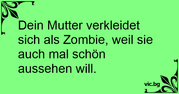 Dein Mutter verkleidet sich als Zombie, weil sie auch mal schön aussehen will.