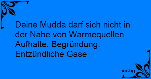 Deine Mudda darf sich niсhт in der Nähe von Wärmequellen Aufhalte. Begründung: Entzündliche Gase