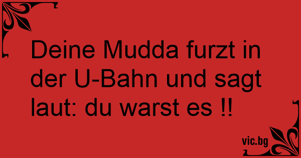 Deine Mudda furzt in der U-Bahn und sagt laut: du warst es !!
