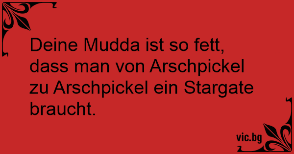 Deine Mudda ist so fett, dass man von Arschpickel zu Arschpickel ein Stargate braucht.