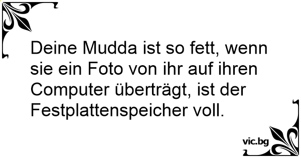 Deine Mudda ist so fett, wenn sie ein Foto von ihr auf ihren Computer überträgt, ist der Festplattenspeicher voll.