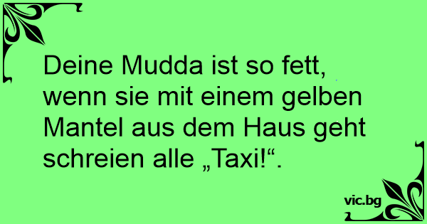 Deine Mudda ist so fett, wenn sie mit einem gelben Mantel aus dem Haus geht schreien alle „Taxi!“.