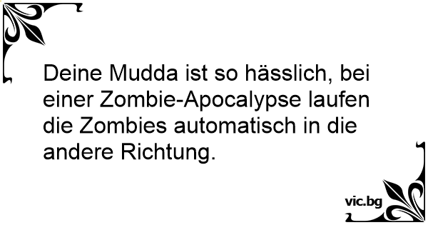 Deine Mudda ist so hässlich, bei einer Zombie-Apocalypse laufen die Zombies automatisch in die andere Richtung.