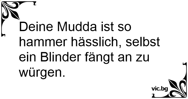 Deine Mudda ist so hammer hässlich, selbst ein Blinder fängt an zu würgen.