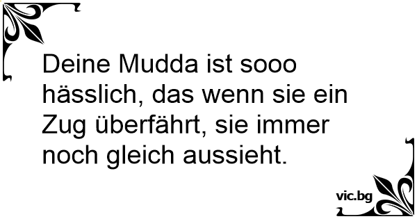 Deine Mudda ist sooo hässlich, das wenn sie ein Zug überfährt, sie immer noch gleich aussieht.