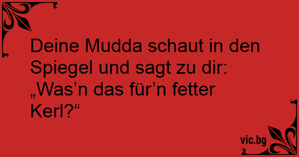 Deine Mudda schaut in den Spiegel und sagt zu dir: