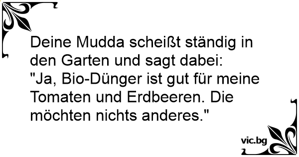 Deine Mudda scheißt ständig in den Garten und sagt dabei: