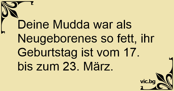 Deine Mudda war als Neugeborenes so fett, ihr Geburtstag ist vom 17. bis zum 23. März.