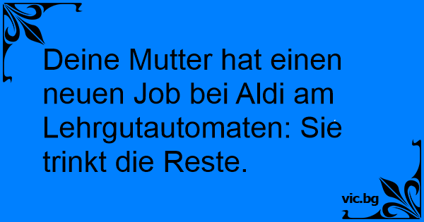 Deine Mutter hat einen neuen Job bei Aldi am Lehrgutautomaten: Sie trinkt die Reste.