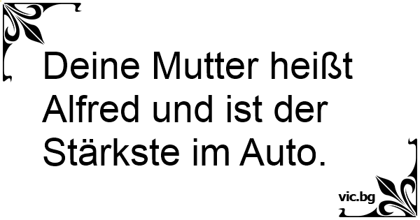 Deine Mutter heißt Alfred und ist der Stärkste im Auto.
