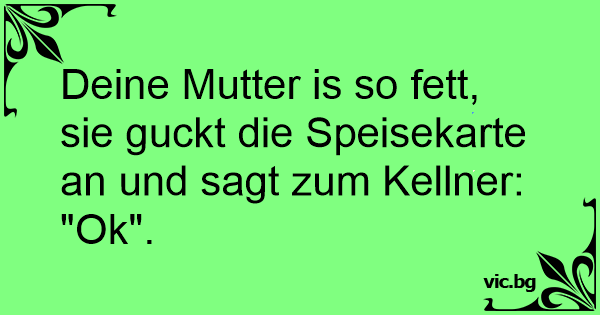 Deine Mutter is so fett, sie guckt die Speisekarte an und sagt zum Kellner: