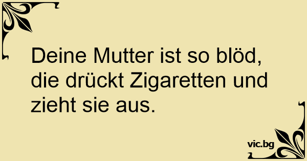 Deine Mutter ist so blöd, die drückt Zigaretten und zieht sie aus.