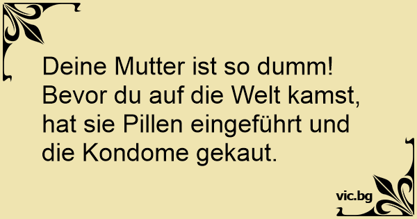 Deine Mutter ist so dumm! Bevor du auf die Welt kamst, hat sie Pillen eingeführt und die Kondome gekaut.
