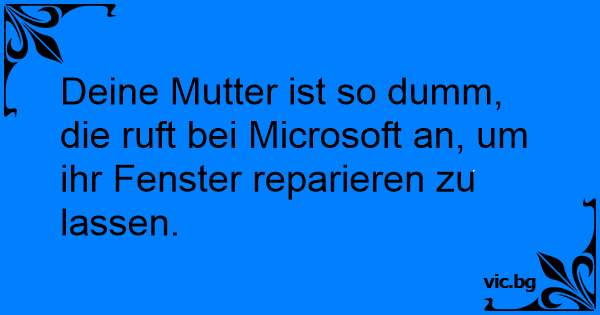 Deine Mutter ist so dumm, die ruft bei Microsoft an, um ihr Fenster reparieren zu lassen.