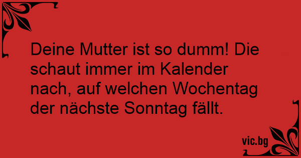 Deine Mutter ist so dumm! Die schaut immer im Kalender nach, auf welchen Wochentag der nächste Sonntag fällt.