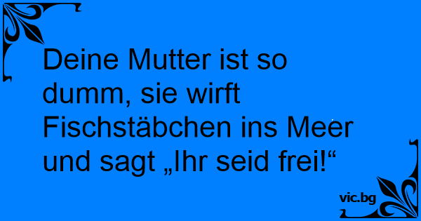 Deine Mutter ist so dumm, sie wirft Fischstäbchen ins Meer und sagt „Ihr seid frei!“