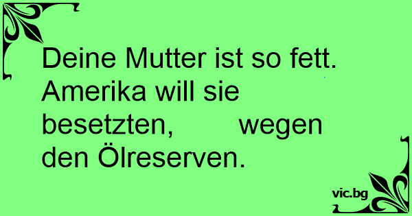 Deine Mutter ist so fett. Amerika will sie besetzten, wegen den Ölreserven.
