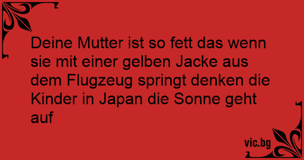 Deine Mutter ist so fett das wenn sie mit einer gelben Jacke aus dem Flugzeug springt denken die Kinder in Japan die Sonne geht auf