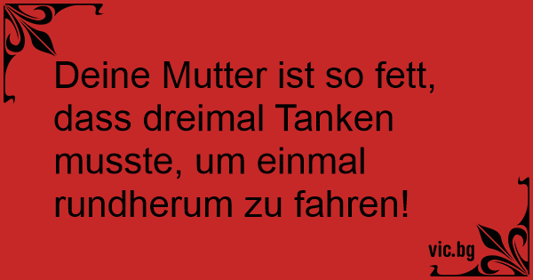 Deine Mutter ist so fett, dass dreimal Tanken musste, um einmal rundherum zu fahren!