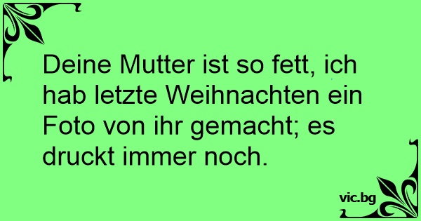 Deine Mutter ist so fett, ich hab letzte Weihnachten ein Foto von ihr gemacht; es druckt immer noch.