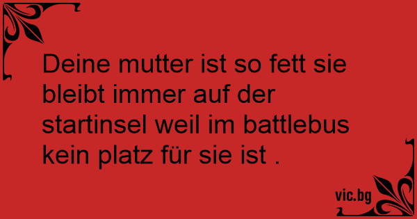 Deine mutter ist so fett sie bleibt immer auf der startinsel weil im battlebus kein platz für sie ist .