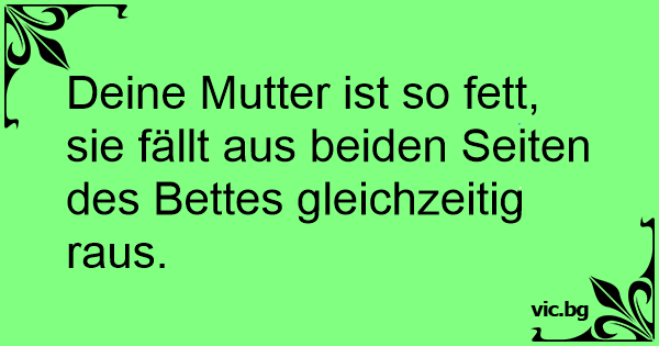 Deine Mutter ist so fett, sie fällt aus beiden Seiten des Bettes gleichzeitig raus.