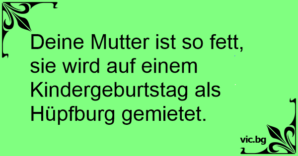 Deine Mutter ist so fett, sie wird auf einem Kindergeburtstag als Hüpfburg gemietet.