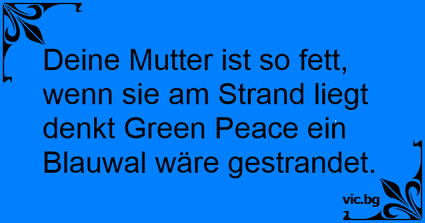 Deine Mutter ist so fett, wenn sie am Strand liegt denkt Green Peace ein Blauwal wäre gestrandet.
