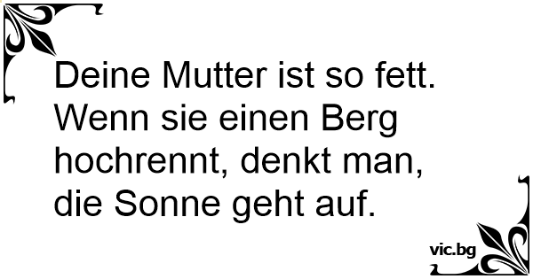 Deine Mutter ist so fett. Wenn sie einen Berg hochrennt, denkt man, die Sonne geht auf.
